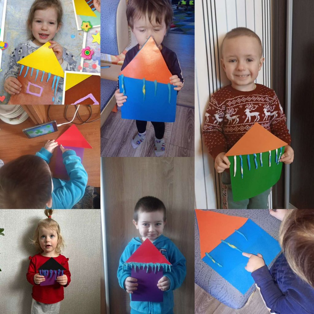 - Як це було: Вихователі підготували для дітей яскраві презентації про те, як з’являється лід. Вдома малята, під наглядом батьків, проводили експеримент «Створи власну бурульку» у морозильній камері, а результатами ділилися у наших фоточатах.